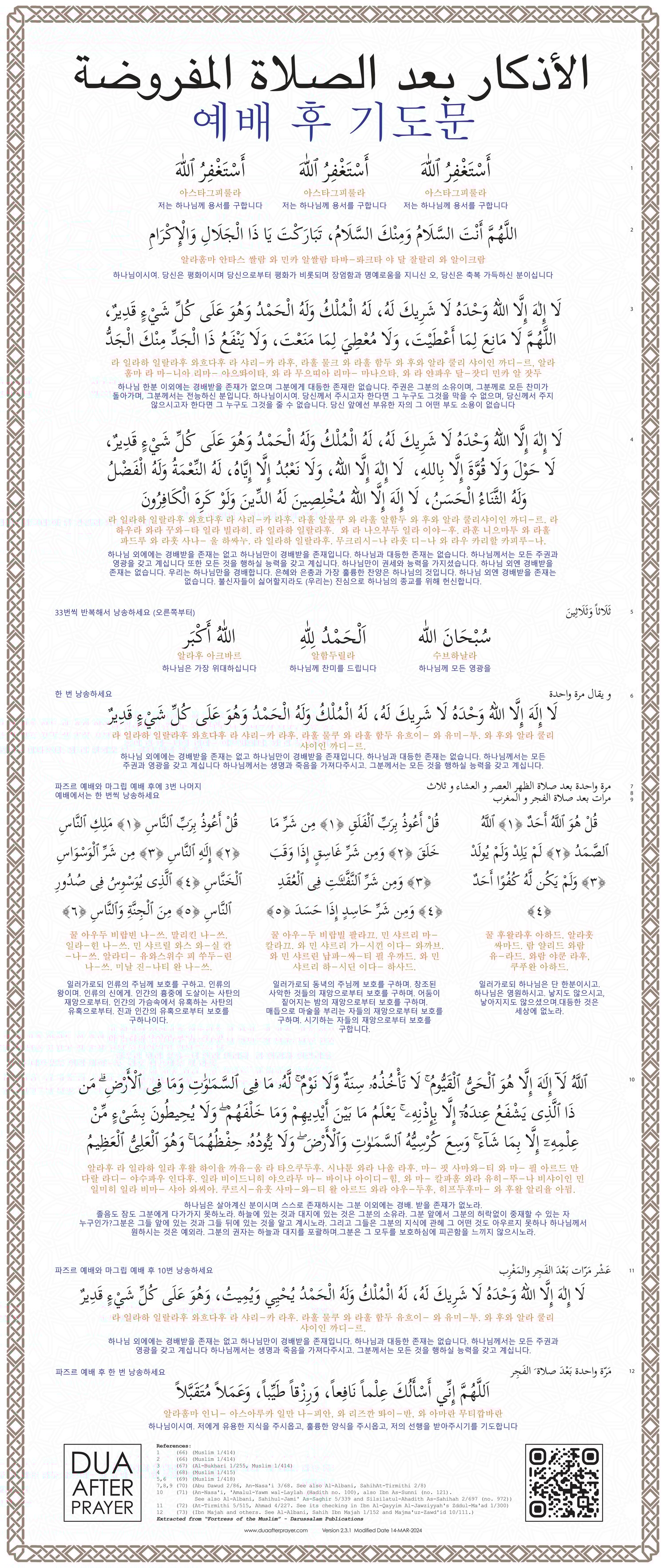 Arabic, English, Urdu, Turkish, Spanish, German, French and Korean.